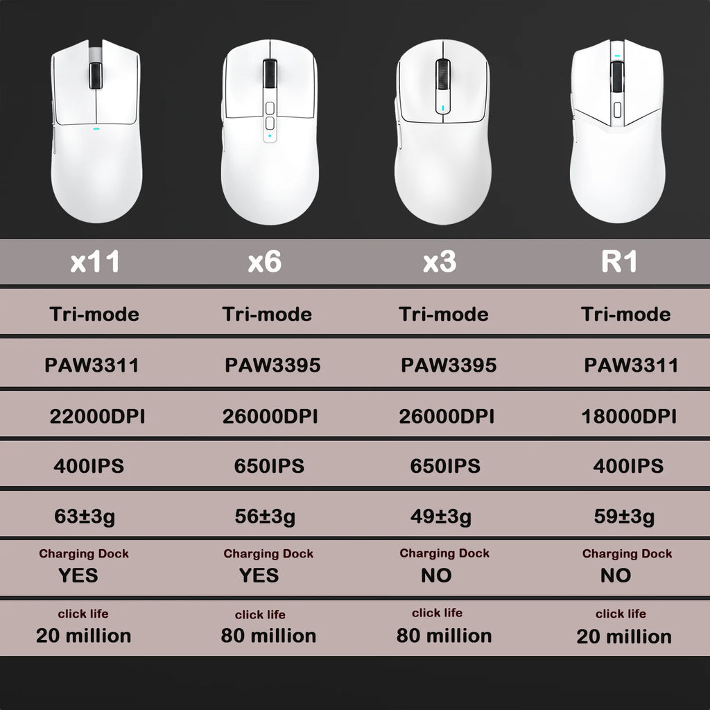 Descubra a linha de mouses sem fio Attack Shark, projetada para gamers que buscam precisão, conforto e desempenho sem fio estável. Cada modelo — X11, X6, X3 e R1 — traz características que atendem desde jogadores casuais até competidores exigentes.